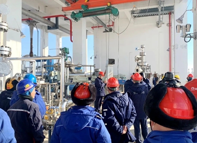 為確保開車成功,項目組積極配合業(yè)主,先后完成了磨煤機試車、油運、各單體試車、工藝管線檢測、儀表聯(lián)鎖控制回路調(diào)試、變換爐催化劑裝填及升溫、氣化爐烘爐預(yù)熱、高壓煤漿泵聯(lián)動試車等開車前的各項準備工作。開車期間,項目組人員堅守現(xiàn)場,不畏嚴寒,在第一時間解決出現(xiàn)的各種問題,保障了開車順利進行。