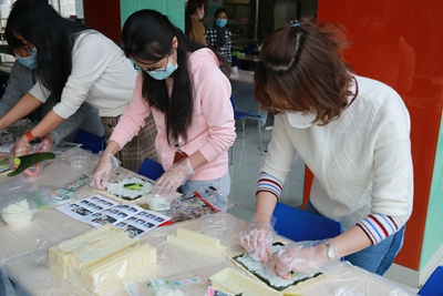 在這個(gè)屬于“女神”的節(jié)日里,工會(huì)組織女職工進(jìn)行了一場(chǎng)愜意又休閑的手工制作活動(dòng)。工作人員將事先準(zhǔn)備好的制作壽司、雪媚娘等食品所需要的原材料在職工食堂擺放整齊,讓大家親自動(dòng)手進(jìn)行制作。制作過(guò)程中,大家親密交談,協(xié)同制作,在忙碌的工作之余度過(guò)了一段難忘的午后時(shí)光。