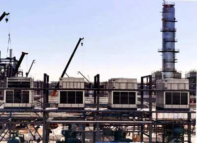 榆神能化煤基乙醇項(xiàng)目冷凝器一次全部吊裝就位