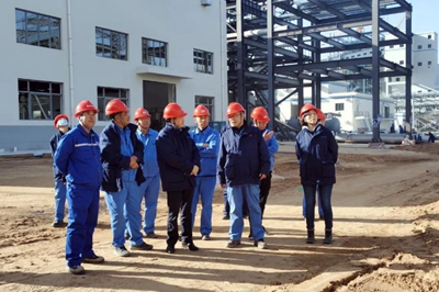 近日,北京石油化工工程有限公司黨委書記、董事長許緘濤到榆神能化50萬噸/年煤基乙醇項目現(xiàn)場檢查指導工作,并代表公司看望了堅守一線崗位的干部職工,公司副總經(jīng)理、乙醇項目主任鄭薇,公司總經(jīng)理助理、乙醇項目副主任田平漢等人陪同檢查。