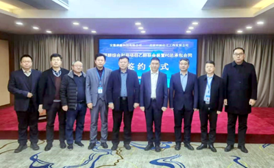 2月13日,安徽碳鑫科技有限公司甲醇綜合利用項目乙醇聯(lián)合裝置PC總承包合同簽約(設(shè)計合同已先期簽約)儀式順利舉行,公司黨委書記、董事長許緘濤出席簽約儀式并致辭,公司總經(jīng)理助理、安全總監(jiān)楊礫及安徽碳鑫科技有限公司主要領(lǐng)導(dǎo)參加了簽約儀式。