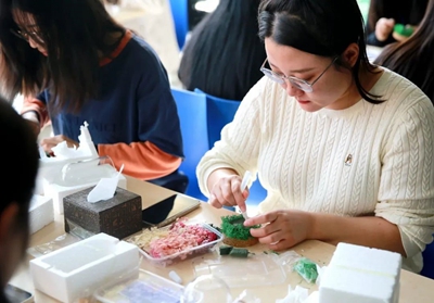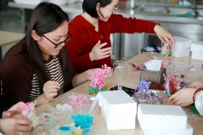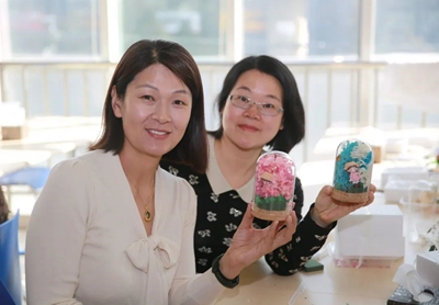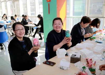 為增強慶?;顒拥娜の缎?、挑戰(zhàn)性、協(xié)作性,組織開展手工制作“永生花”體驗活動?;顒又?,工作人員提前將材料進行分類準備好,并詳細講解“永生花”的制作流程和技巧。大家邊學邊交流經(jīng)驗,以塑刀為針,以膠水為線,紛紛動起手來,傾力展示自己豐富的想象力和創(chuàng)造力,將工作中的細心、專心、耐心投入到“永生花”的制作上。經(jīng)過個把小時,女職工們制作出了一朵朵精美的“永生花”,看著自己親手制作的作品,大家臉上洋溢著滿滿的成就感和幸福感?;馃岬姆諊?,也將此次“三八”節(jié)活動推向了高潮。