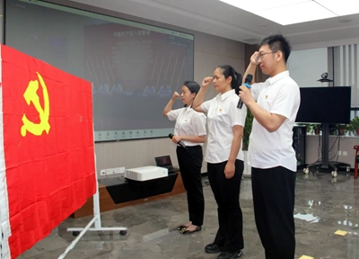 大會在莊嚴(yán)的國歌聲中拉開帷幕,全體參會干部、職工著裝整齊、昂首肅立。面對鮮紅的黨旗,預(yù)備黨員在公司黨委副書記、總經(jīng)理田偉同志的領(lǐng)誓下,莊嚴(yán)宣誓,擲地有聲地表達(dá)了對黨的無限忠誠和崇高敬意。