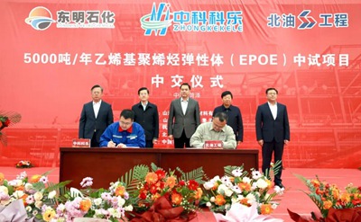 11月18日,由北京石油化工工程有限公司總承包的東明中油燃料石化有限公司5千噸/年乙烯基聚烯烴彈性體(EPOE)中試項(xiàng)目順利中交,標(biāo)志著項(xiàng)目全面由建設(shè)階段轉(zhuǎn)入試運(yùn)行準(zhǔn)備階段。