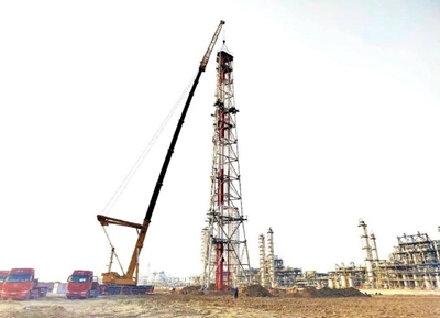 北油工程安徽碳鑫年產(chǎn)3萬噸乙基胺項目火炬順利完成吊裝