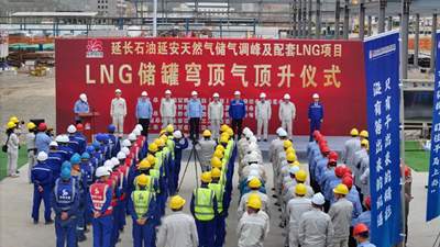 延長(zhǎng)石油延安LNG項(xiàng)目完成“雙罐同步氣頂升”