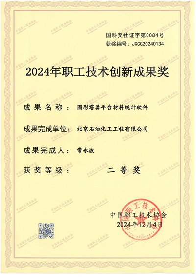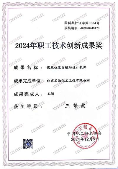 近日,在2024年全國職工技術(shù)創(chuàng)新成果評比中,北京石油化工工程有限公司自主研發(fā)的“圓形塔器平臺材料統(tǒng)計軟件”和“儀表位置圖輔助設(shè)計軟件”分別斬獲二等獎、三等獎,展現(xiàn)了公司在石化工程數(shù)字化領(lǐng)域的創(chuàng)新實力。