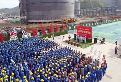 延長石油延安天然氣儲氣調(diào)峰及配套LNG項目現(xiàn)場召開了主題為"安全生產(chǎn)月及世界環(huán)境日"安全生產(chǎn)月啟動儀式,延長石油集團(tuán)煉化公司項目建設(shè)指揮部指揮、黨委副書記祈潤宏,黨委委員、副指揮周玉和,副指揮王毅彪 ,北京石油化工工程有限公司副總經(jīng)理、安全總監(jiān)楊礫出席活動。儀式上,參建人員進(jìn)行安全宣誓并在主題橫幅上鄭重簽名,現(xiàn)場同時發(fā)放安全宣傳手冊。