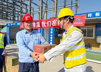 在搶抓工期的同時(shí),項(xiàng)目部始終將安全生產(chǎn)放在首位。截至目前,項(xiàng)目已累計(jì)實(shí)現(xiàn)90萬(wàn)安全人工時(shí),全體參建人員嚴(yán)格遵守安全操作規(guī)程,以零事故的優(yōu)異成績(jī)樹(shù)立行業(yè)安全生產(chǎn)新標(biāo)桿。針對(duì)近階段持續(xù)高溫天氣,項(xiàng)目部采取多項(xiàng)措施保障施工人員健康安全,包括發(fā)放防暑降溫飲品、合理調(diào)整作業(yè)時(shí)間等,確保高溫季節(jié)施工安全有序進(jìn)行。