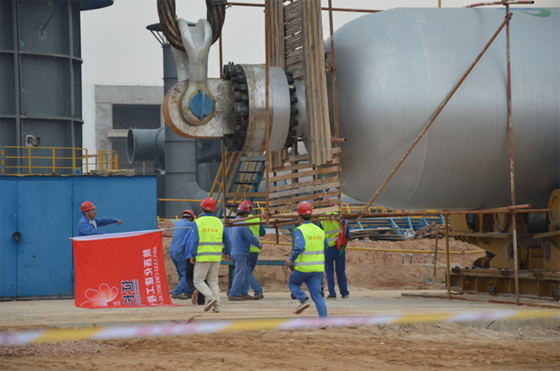 2013年9月3日上午9點(diǎn)18分,712項(xiàng)目加氫裂化固定床反應(yīng)器吊裝工作正式開始,11點(diǎn)18分反應(yīng)器吊裝完成,用時(shí)兩個(gè)小時(shí),獲得一次性成功。這次吊裝成功,不僅彰顯著作為項(xiàng)目最核心裝置之一的固定床順利安裝到位,更重要的是我公司駐外項(xiàng)目積攢了豐富的經(jīng)驗(yàn),為今后大型設(shè)備安裝工作夯實(shí)了堅(jiān)實(shí)的基礎(chǔ)。